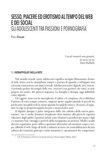 Giovanetti senza guide morali possono perdersi navigando in rete non solo per le insidie del digitale, ma soprattutto per la fragilità dei loro adulti di riferimento. Ed è oggi questa maturità dei “grandi” la vera mancanza che rende incerto il futuro delle nuove generazioni. Il 30% del traffico internet è legato al porno. 28.258 persone al secondo guardano pornografia online. Il solo network di Pornhub conta centosessantotto milioni di visitatori all’ora. Letà media in cui si vede un porno online per la prima volta è Il anni. Su Google una ricerca su cinque è legata al sesso e avviene da mobile.